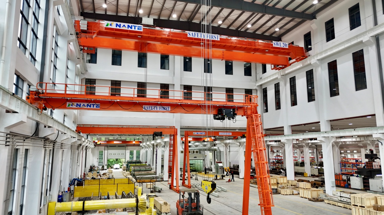 | Grand atelier d’assemblée de produit | Une portée de 30 mètres et un espace de levage de 18 mètres équipé de deux ponts roulants antibalancement et de trois semi-portiques. Cet espace permet d’assembler et de tester des équipements à grande échelle et des grues ultra-robustes. |